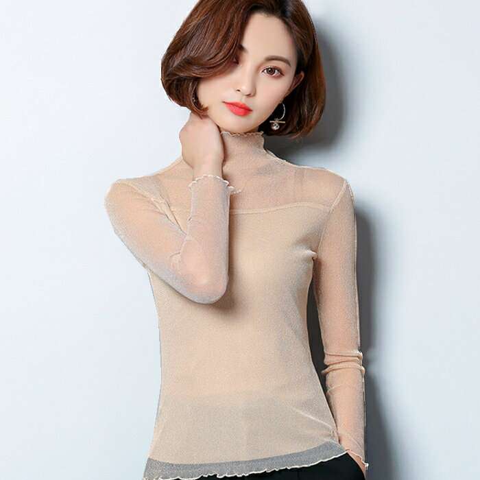 【M-3XL】着痩せ効果! ヌーディーゴールド 輝くトップス 銀糸 ラメ 長袖 ボトルネック ハイネック タートルネック シースルー 社交ダンス カラオケ衣装 フォーマル 演奏会 パーティー ヌーディーカラー 肌色 金 ミカドレス cr387-mcv zt