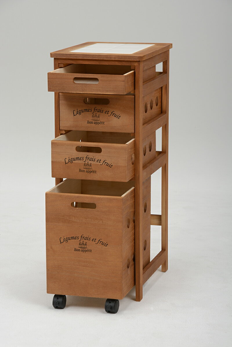 【商品について】■商品サイズ(外寸)(約)幅30×奥行40×高さ79cm■補足説明・キャスター付・天板:タイル付 ・引出内寸(小):約幅23×奥行34.5×深さ4.5cm ・引出内寸(中):約幅23×奥行34.5×深さ10.5cm ・引出内寸(大):約幅23×奥行34.5×深さ31cm■成分材質主材:桐材■その他この商品は1梱包でお届けします。