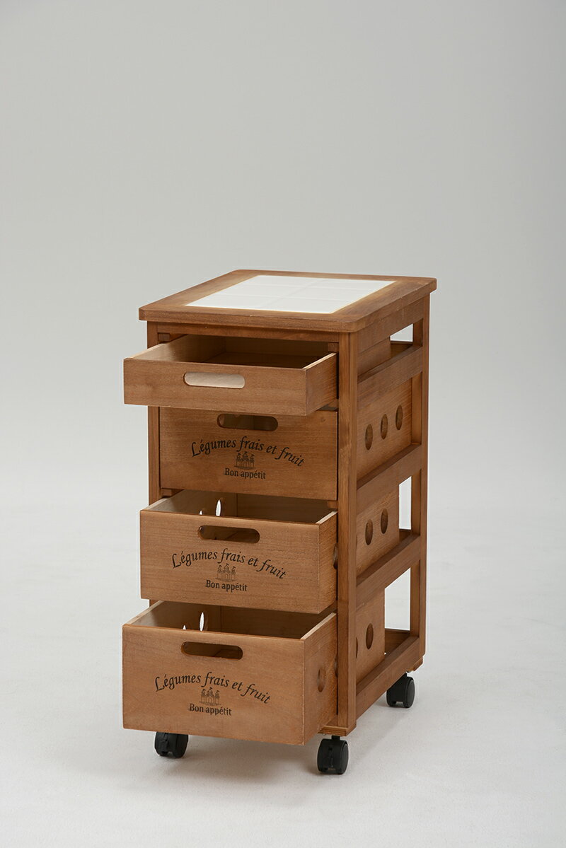 【商品について】■商品サイズ(外寸)(約)幅30×奥行40×高さ61.5cm■補足説明・キャスター付・天板:タイル付 ・引出内寸(小):約幅23×奥行34.5×深さ4.5cm ・引出内寸(中):約幅23×奥行34.5×深さ10.5cm ・引出内寸(大):約幅23×奥行34.5×深さ12.5cm■成分材質主材:桐材■その他この商品は1梱包でお届けします。