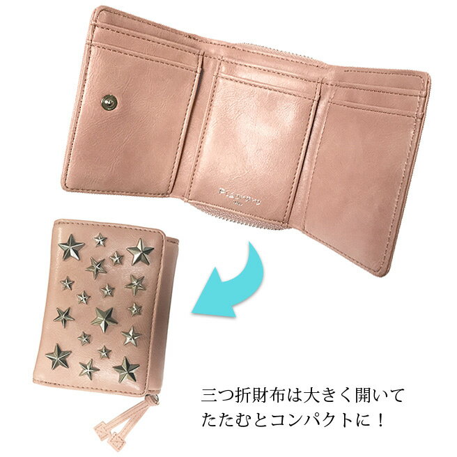 タグ #三つ折り財布 #折財布 #小銭入れ スタースタッズを散りばめたミニウォレットです♪